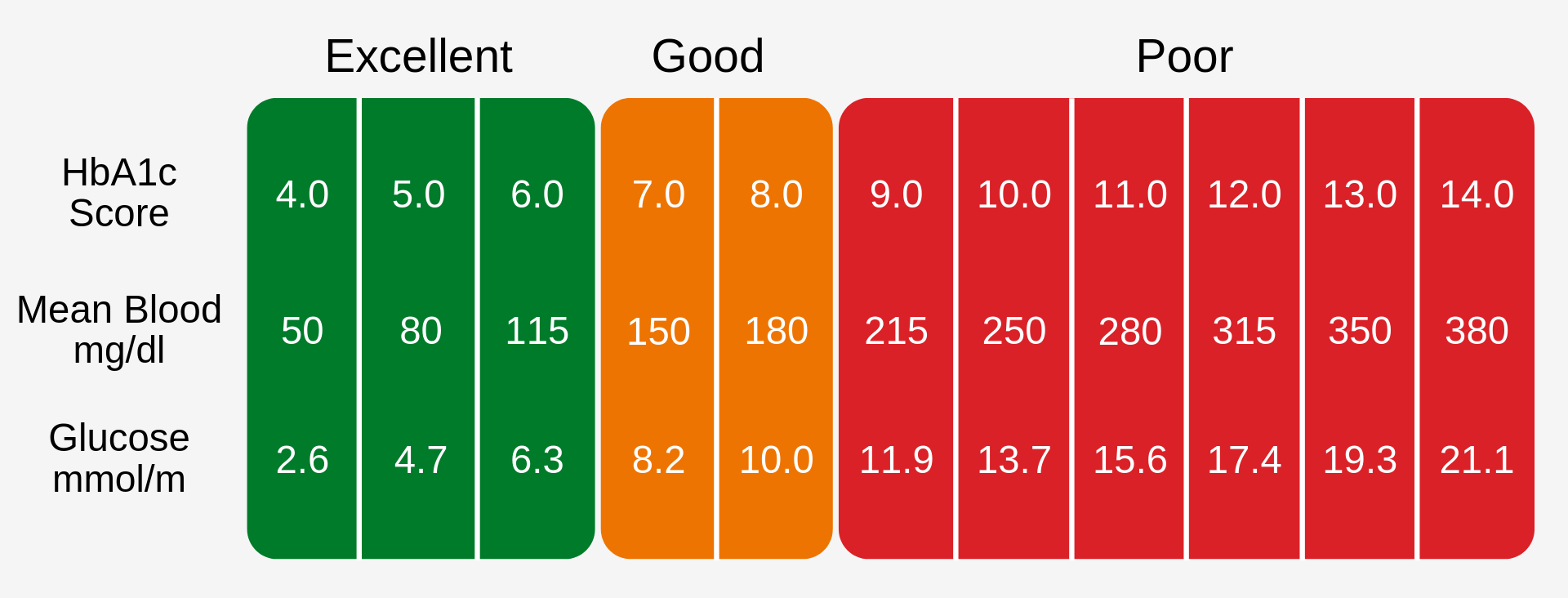 HbA1C: The normal range for non-Diabetic people is 4-6 mmol/l.