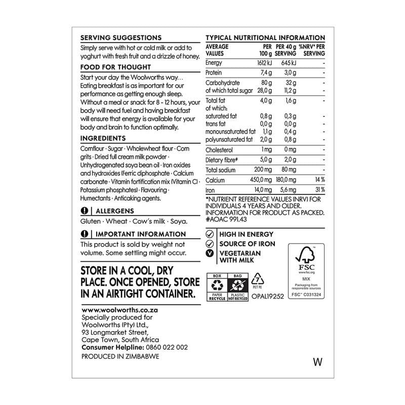 - Breakfast cereal: whole grain first, 5 g sugars or less per 100 g, 6 g fiber or more per 100 g.